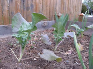 Broccoli is doing OK. I bought 3 plants from the nursery – my 5 seedlings are not doing so well.