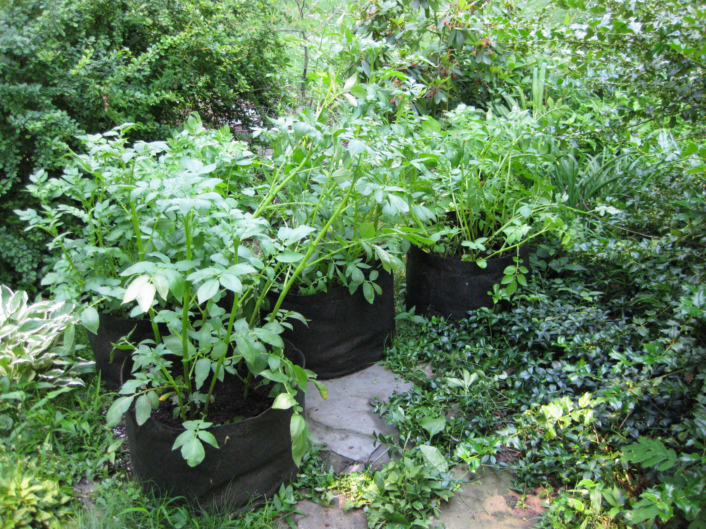 Been getting the potatoes (Yukon Gold, Russian Banana Fingerling) established for almost a month now in the grow bags. The dirt is near the brim, so nothing to do now except wait until August.