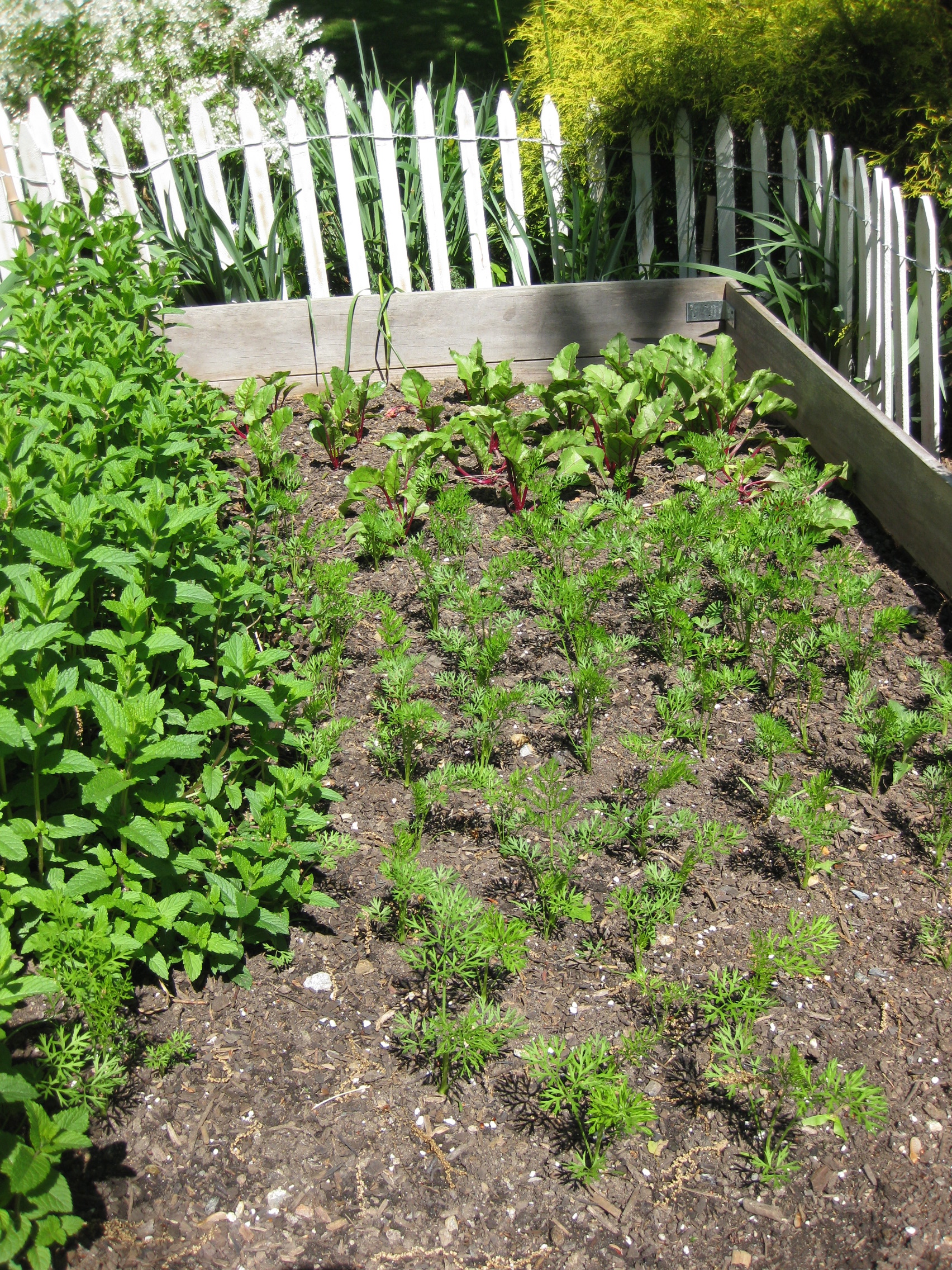 went in the ground over the weekend: lettuce, spinach and peas in one bed, beets and carrots in the other. Some oregano made it through the winter in the 1st bed and a bit of mint survived in the 2nd. I say “a bit” … it took over half the bed and that’s what’s left after I harvested some and pulled the rest to the side.