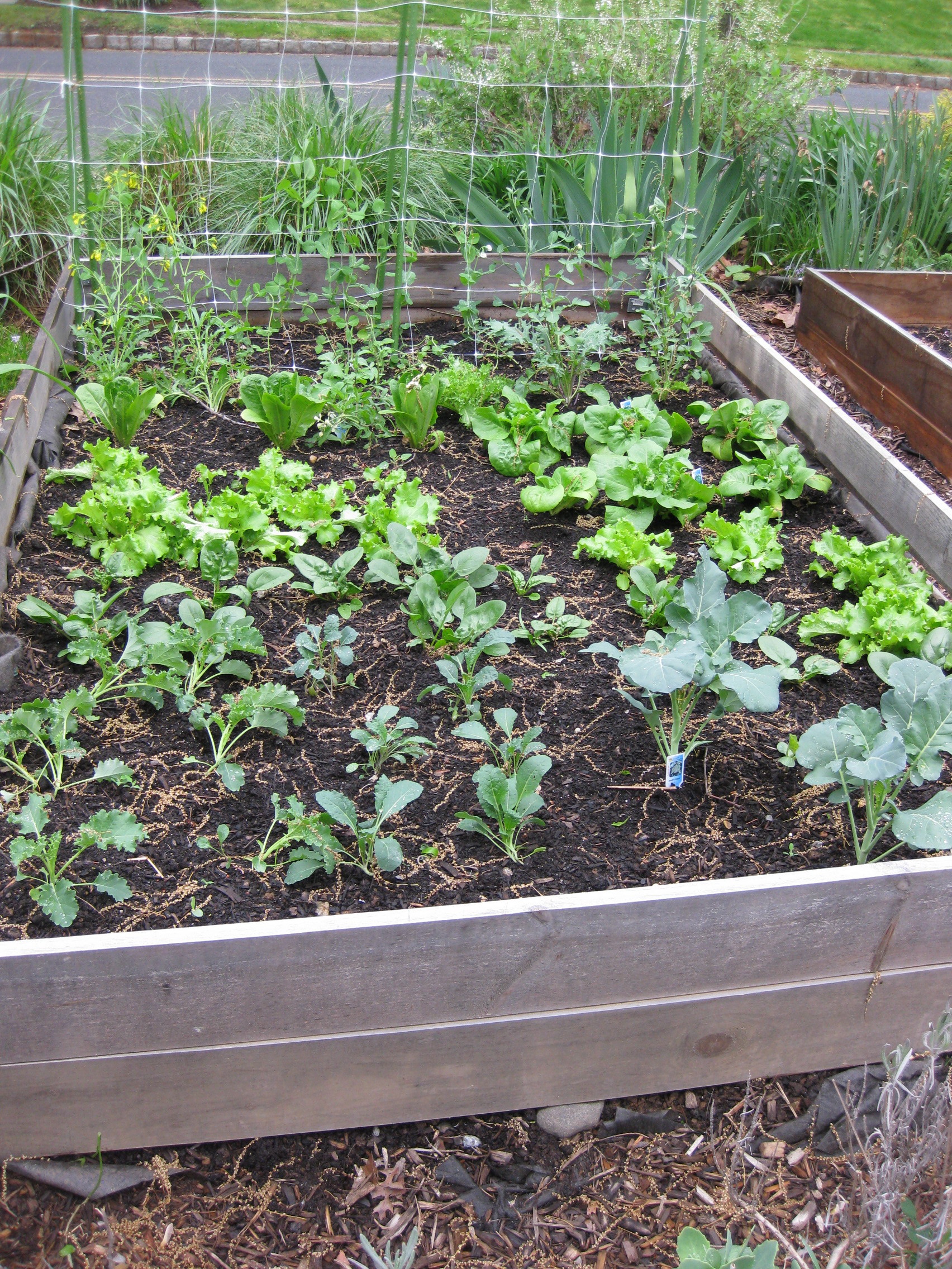 We did a family bike ride on the Jersey side of the Delaware River a few weeks ago (the D&R Canal Towpath, a must-do if you have kids, you like to bike and you’re within driving distance). The initial part of the trail we rode in Frenchtown allowed us to peek into the backyards of a few homes that backed up to the trail. I was a little taken aback to see gardens with spinach, lettuce, kale and cabbage already up and about. The early spring combined with the use of row cover overnight was giving these folks an early start and I resolved to do the same. My seedlings, along with a few nursery-bought items went in the ground a couple of days ago. April 1: a record start for me. Shelling and snap peas in two beds, four types of lettuce, two types of kale, two types of spinach and 3 broccoli seedlings. I’ll direct seed carrots and beets soon as well.