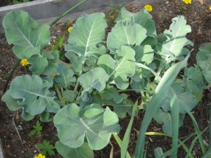 Broccoli is doing OK. I bought 3 plants from the nursery – my 5 seedlings are not doing so well.