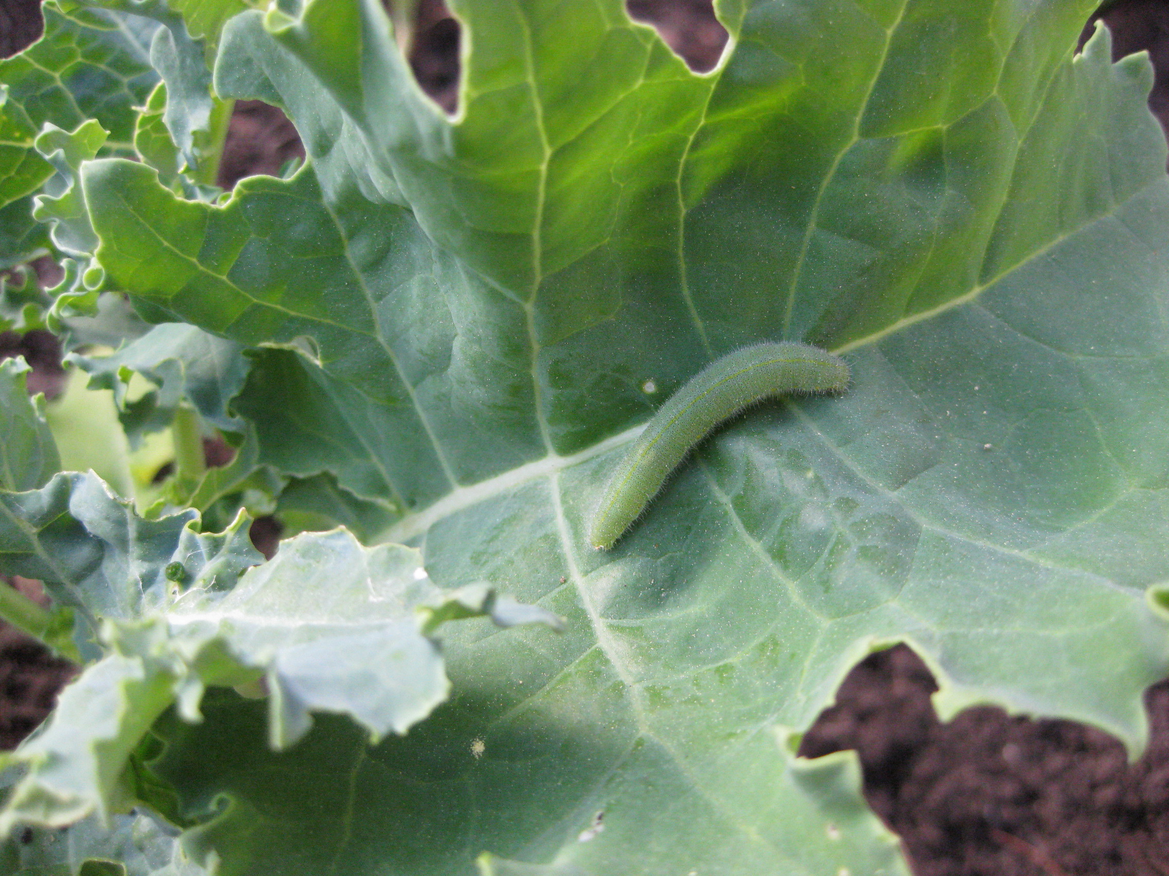 A few heads on the broccoli. I figured out what’s been chomping on the leaves, as well as the kale: cabbageworms.